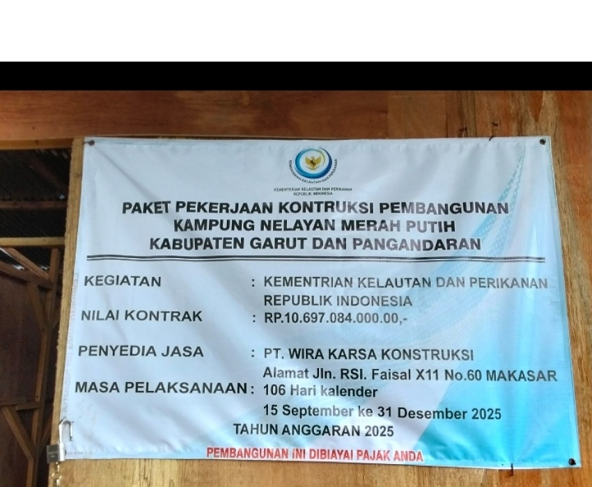 Proyek Pembangunan Kampung Nelayan Merah Putih yang dikerjakan oleh Kementerian Kelautan dan Perikanan Republik Indonesia (KKP RI) di wilayah Kabupaten Pangandaran kini menuai sorotan Warga. Pasalnya, Masyarakat disekitar menduga adanya ketidaksesuaian material bangunan dengan spesifikasi yang tercantum dalam perencanaan proyek.