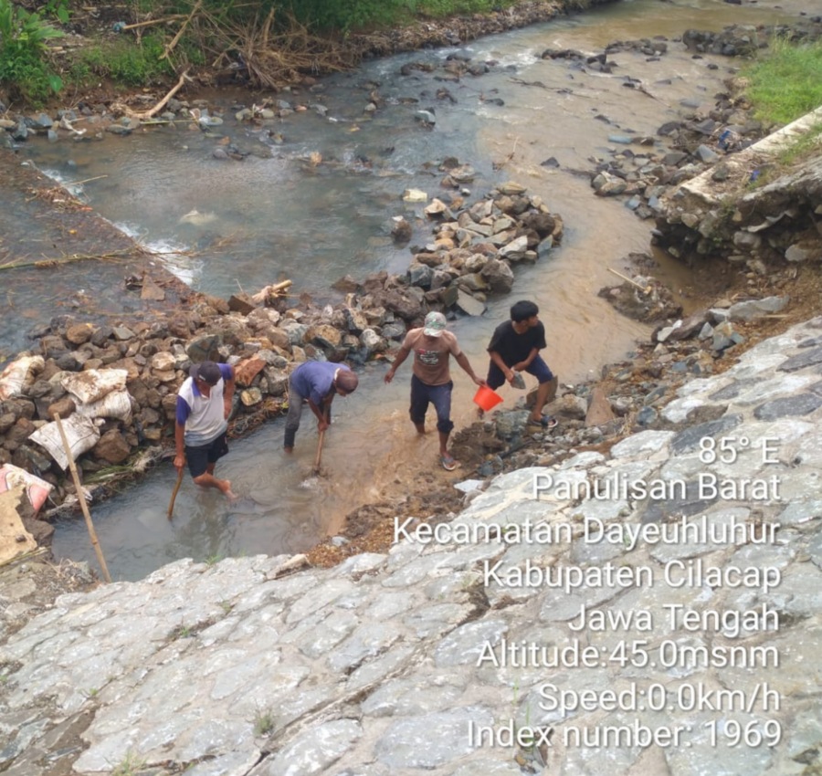 Sejumlah warga memberikan apresiasi kepada BBWS Citanduy dalam menanggulangi bencana alam berupa pemasangan Bronjong dan Tembok Penahan Tebing (TPT) Sipon Cibarangbang, Desa Panulisan Barat Kecamatan Dayeuhluhur, Kabupaten Cilacap, Jawa Tengah, melalui PPK O & P SDA III, Ijang Agus Nurul Fuad, ST, yang kini tengah dikerjakan oleh pihak Kontraktor Son haji asal Majenang.