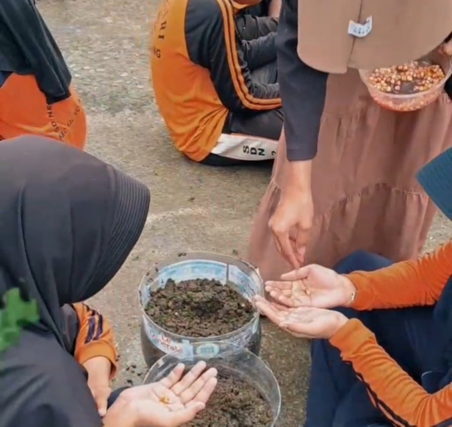 Dengan didampingi oleh guru, para siswa tampak antusias dan bersemangat dalam mengikuti setiap tahap penanaman. Alhamdulillah terlihat suasana kebersamaan dan gotong royong yang begitu terasa kental selama kegiatan berlangsung. Para siswa saling membantu dan bekerja sama dalam menanam benih. Tidak sedikit dari Mereka yang mengaku senang bisa belajar langsung di luar kelas.
